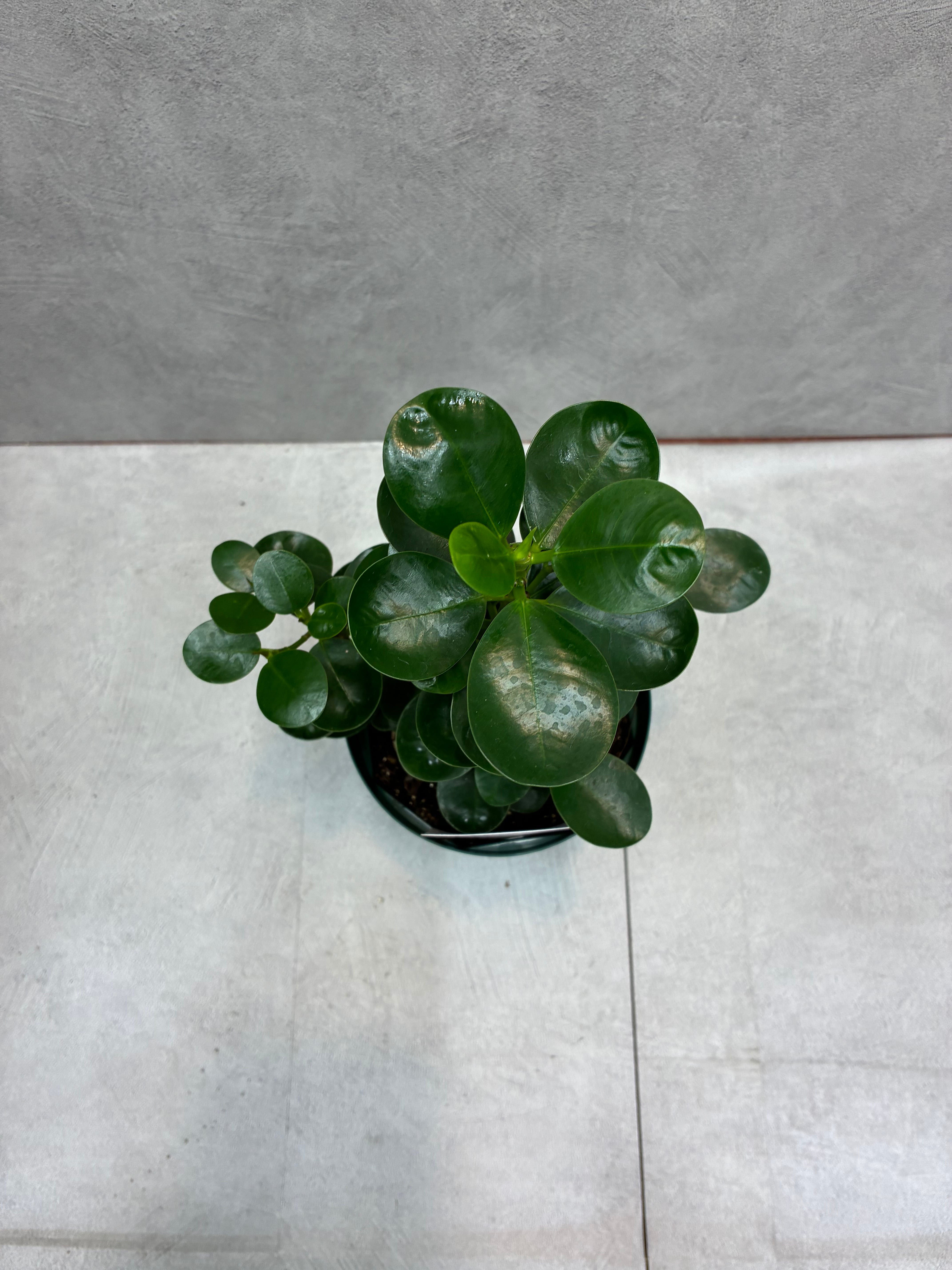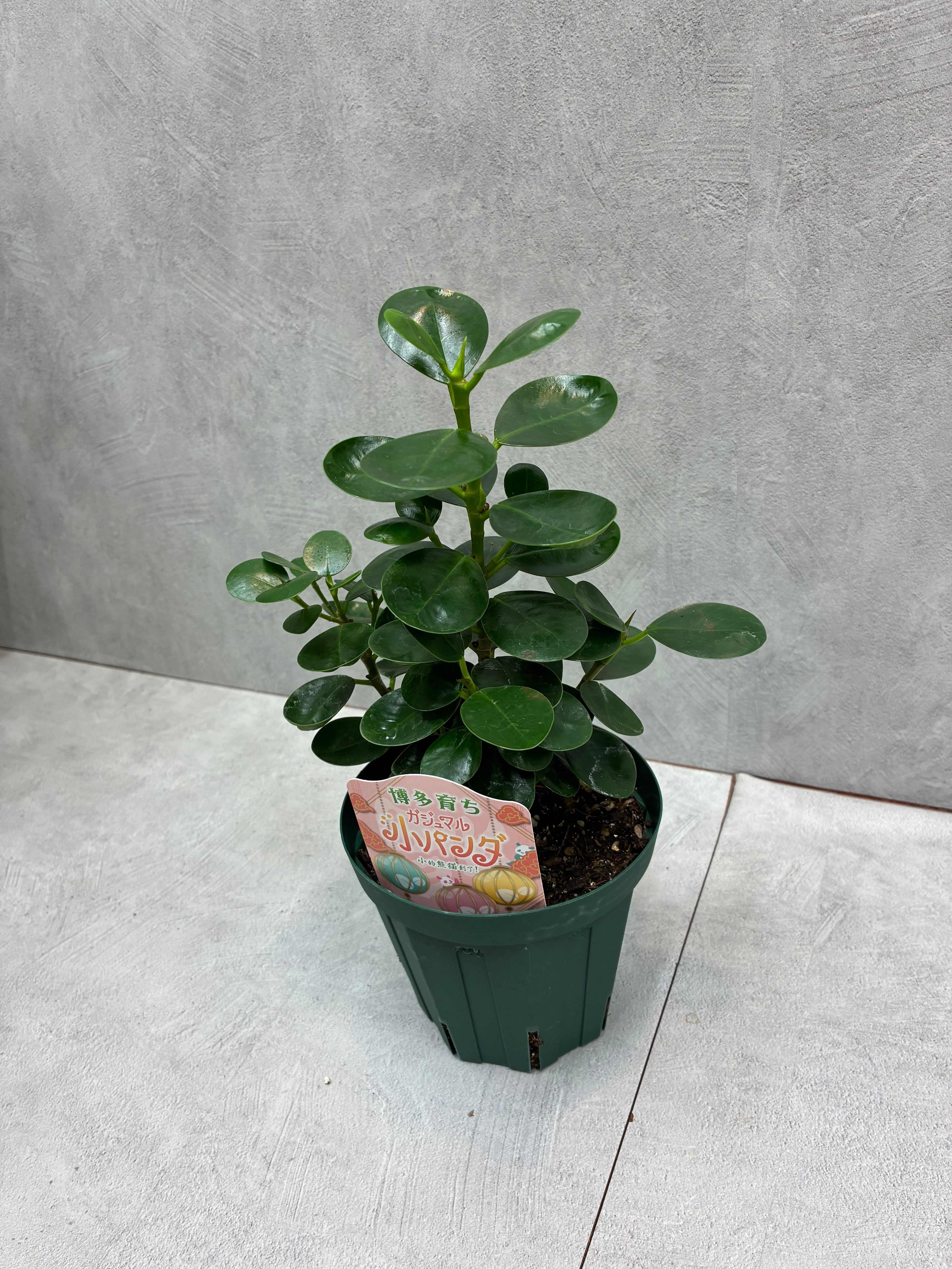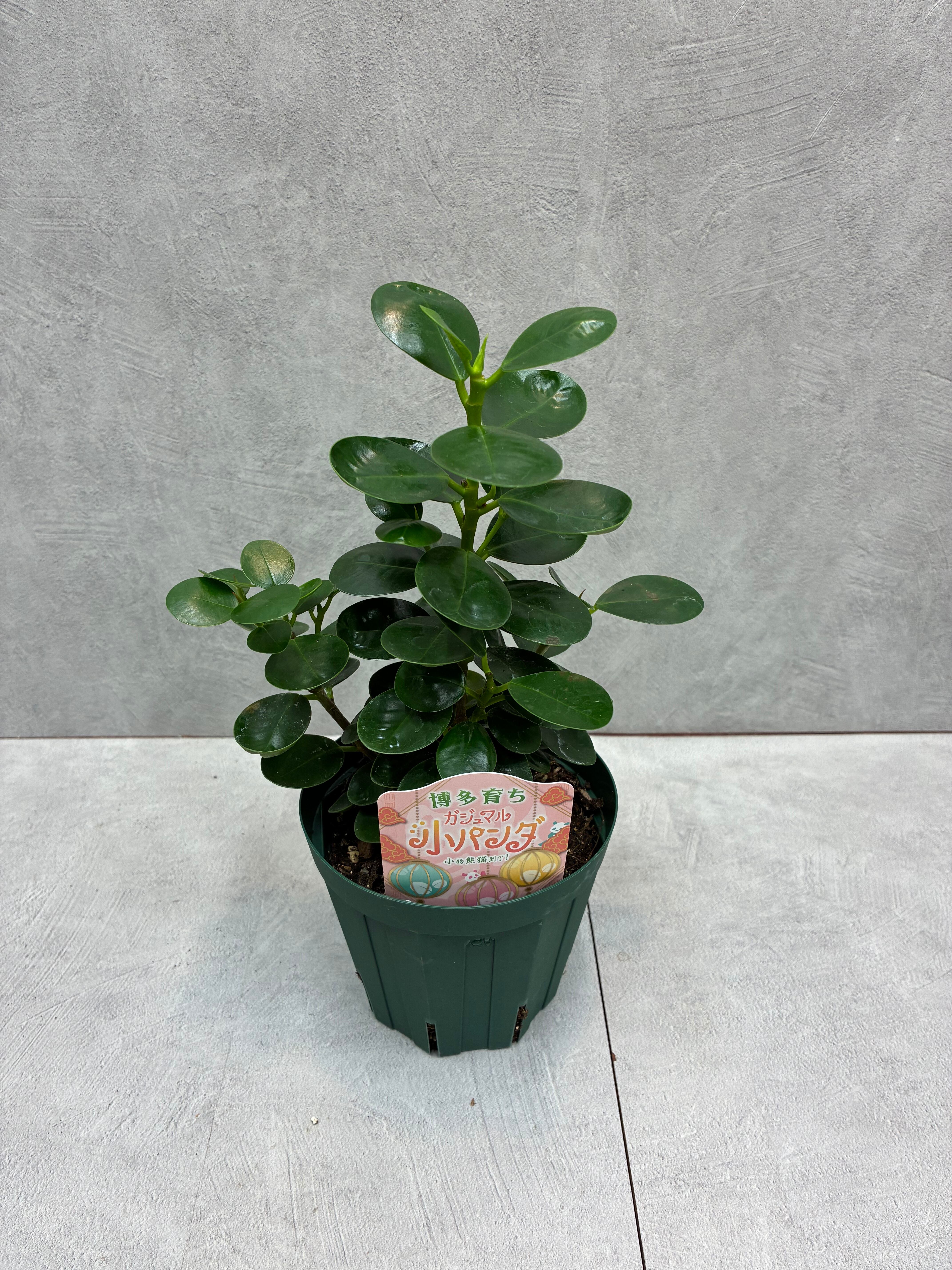 丸くて可愛い葉が特徴の「パンダガジュマル」の、さらに小型で背が伸びにくい「矮性(わいせい)」品種です。